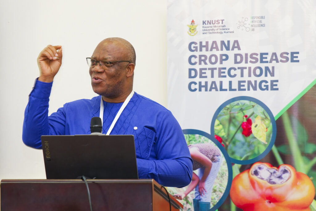 Prof. Kponyo highlighted the importance of datasets in AI-driven solutions and noted RAIL’s collaboration with the Plant Protection and Regulatory Services (PPRSD) and the Ministry of Agriculture to gather Afrocentric datasets on crop diseases. He announced RAIL’s Agrivoltaic Initiative, which integrates farming and solar energy generation with demonstration sites in Tamale and Kumasi. Notably, the first dataset on agrivoltaics has been published and is now accessible on Kaggle (🔗 Access the dataset here)