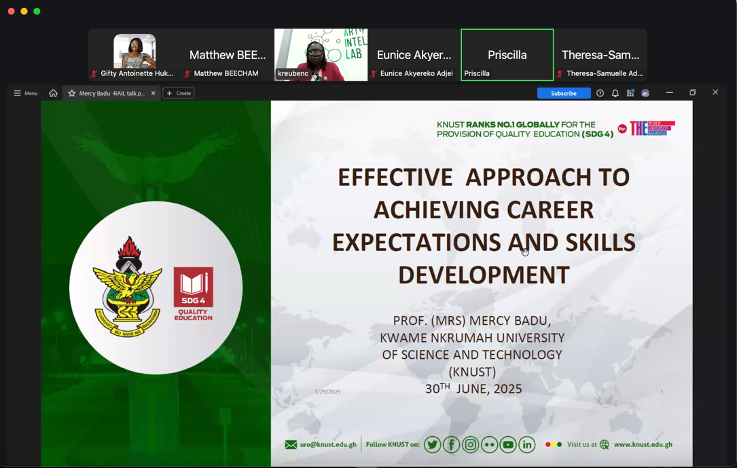 The Women in Technology and AI in Education themes of the Responsible AI Lab (RAIL) and the AI for Sustainable Development (AI4SD) initiative hosted a special Mentor-Mentee Meet on 30th June, 2025, offering students practical guidance on career development, personal growth, and long-term goal setting. In his opening remarks, Prof. Jerry John Kponyo, PI and Scientific Director of RAIL and Project Lead for AI4SD, thanked mentors for accepting the call. “We are privileged to have your time,” he said, urging attendees to seize the opportunity to learn.