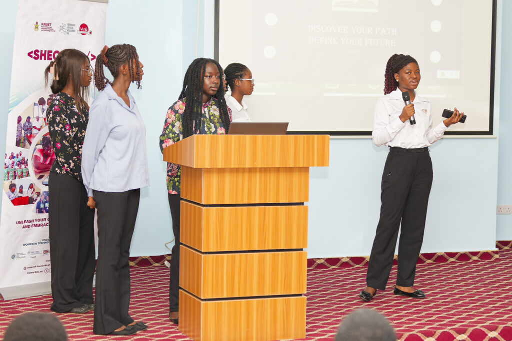Dr. Eunice Akyereko Adjei, Women in Technology Theme Lead, shared the evolution of SHECodes since its launch in 2022. Cohort 1 mastered Arduino, Cohort 2 delved into Python, and Cohort 3 conquered Machine Learning.
