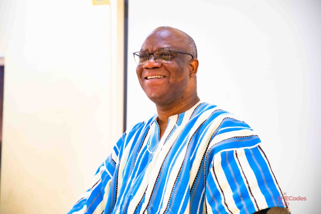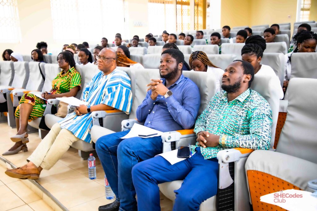 In his welcome address, Prof. Jerry John Kponyo, Principal Investigator and Scientific Director for the Responsible AI Lab (RAIL), highlighted the importance of the SHEcodes initiative. Born under RAIL’s Women in Technology theme in partnership with the Women in Engineering (WinE) KNUST Chapter, the initiative equips females to navigate the digital space where the future belongs. He mentioned the need for students to prepare for new jobs in the digital space and build capacity for transitioning roles. Prof. Kponyo urged students to focus on AI and robotics and to channel these skills into solving societal problems, stating that education is only meaningful when it addresses real-world issues. He expressed gratitude to the collaborators, students, and stakeholders for their participation and called for continued support to secure the future of the youth.