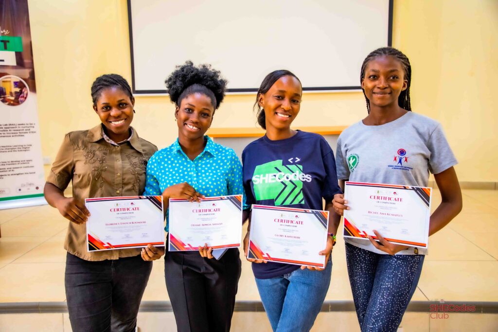 On 3rd August 2024, the graduation and Python challenge for the SHECodes Cohort 2 Club was held at the RWESCK Auditorium. The SHECodes club is a digital skills development programme that trains female students in a programming language. It seeks to equip ladies from diverse fields of study with coding skills and build their capacities in AI-based solutions to solve real-life problems.