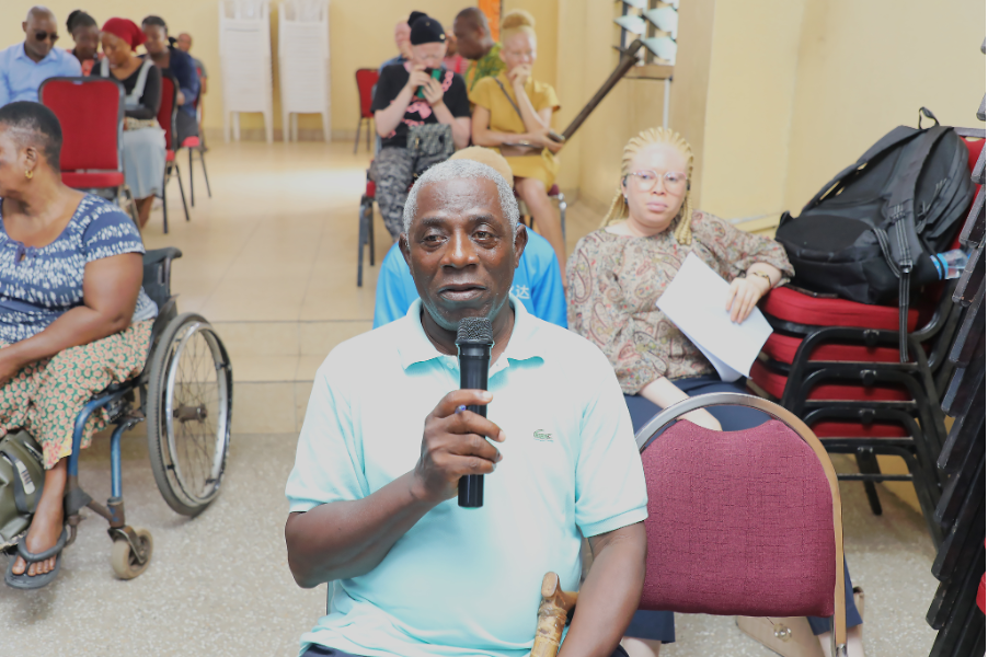 The program began with a welcome address by Mr. Charles Bentum, the Regional Representative for the Physically Challenged. He shared that although there are 15 disability organizations under the Ghana Federation of Disability Organizations (GFD), a selection process guided by the project’s scope was used to determine participation in this engagement. He encouraged all attendees to cooperate and participate fully to ensure the success of the study.