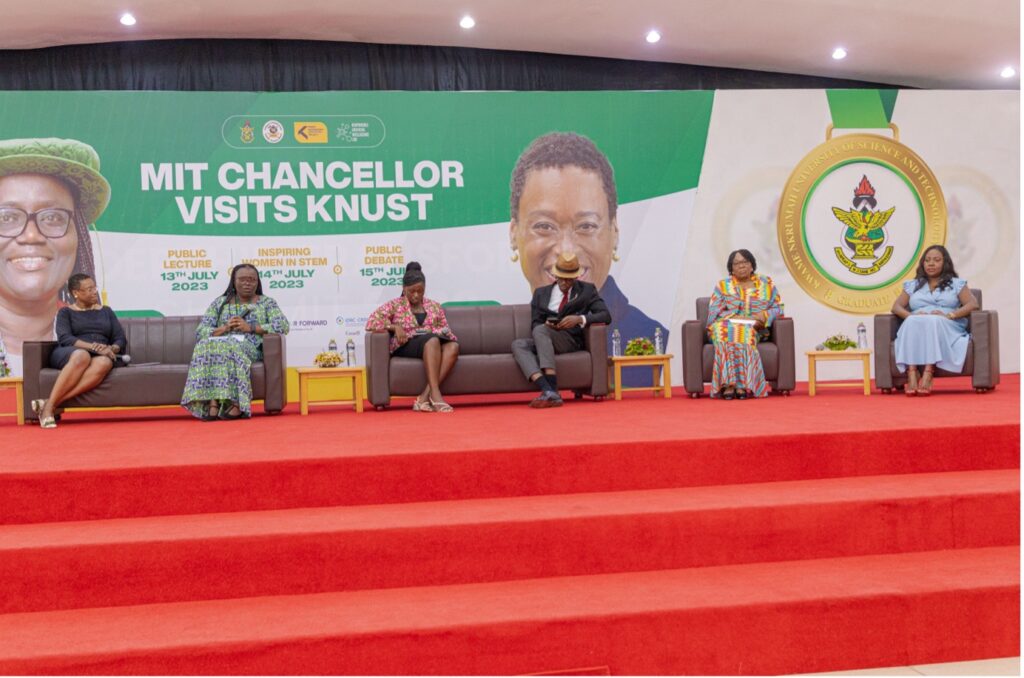 Accomplished speakers in the persons of the Chancellor of Massachusetts Institute of Technology (MIT), Prof. Melissa Nobles, Vice-Chancellor of KNUST, Prof. Mrs. Rita Akosua Dickson, Chief Executive Officer (CEO), Vodafone Ghana, Ing. Patricia Obo-Nai and the President, Women in STEM (WiSTEM), Prof. Mrs. Ibok Nsa Oduro shared their life stories, experiences, and insights to encourage the youth to pursue their dreams fearlessly. The program was dubbed “Inspiring the Next Generation of Women Innovators” and was held on 14th July 2023 at the Great Hall, KNUST.