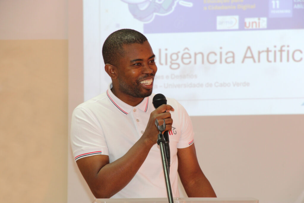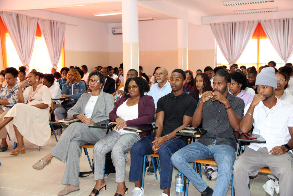 Representing the University of Cabo Verde (UNICV), the Responsible and Smart Solutions Laboratory (RS²LAB) actively contributed to the discussion. A delegation from the institution, led by Prof. Arlindo Veiga, engaged students with valuable insights into digital security and the impact of AI on everyday life.